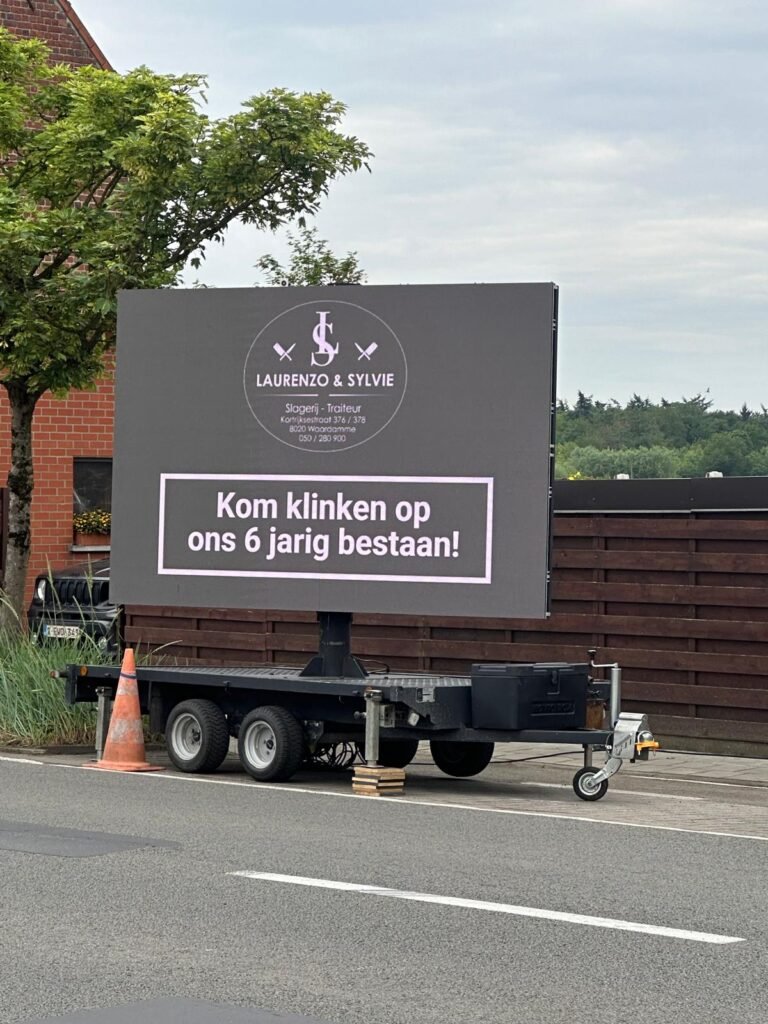 Ons 6m² ledscherm huren, op aanhangwagen is dé flexibele oplossing om jouw evenement, boodschap of promotie extra zichtbaarheid te geven. Met haarscherpe beeldkwaliteit, een opvallend formaat en eenvoudige mobiliteit is dit scherm perfect voor diverse toepassingen, van bedrijfsevenementen en sportwedstrijden tot festivals en reclamecampagnes. Dankzij de gebruiksvriendelijke bediening kun je moeiteloos video’s, presentaties en advertenties tonen die gegarandeerd de aandacht trekken. Of het nu gaat om indoor of outdoor gebruik, ons ledscherm biedt maximale impact en is de ideale keuze voor iedereen die een ledscherm wil huren en op zoek is naar een hoogwaardige en professionele ledscherm-oplossing. Huur vandaag nog een ledscherm van flexled in west-, oost-vlaanderen gans vlaanderen, gans België of zelfs internationaal en maak van jouw evenement een succes!